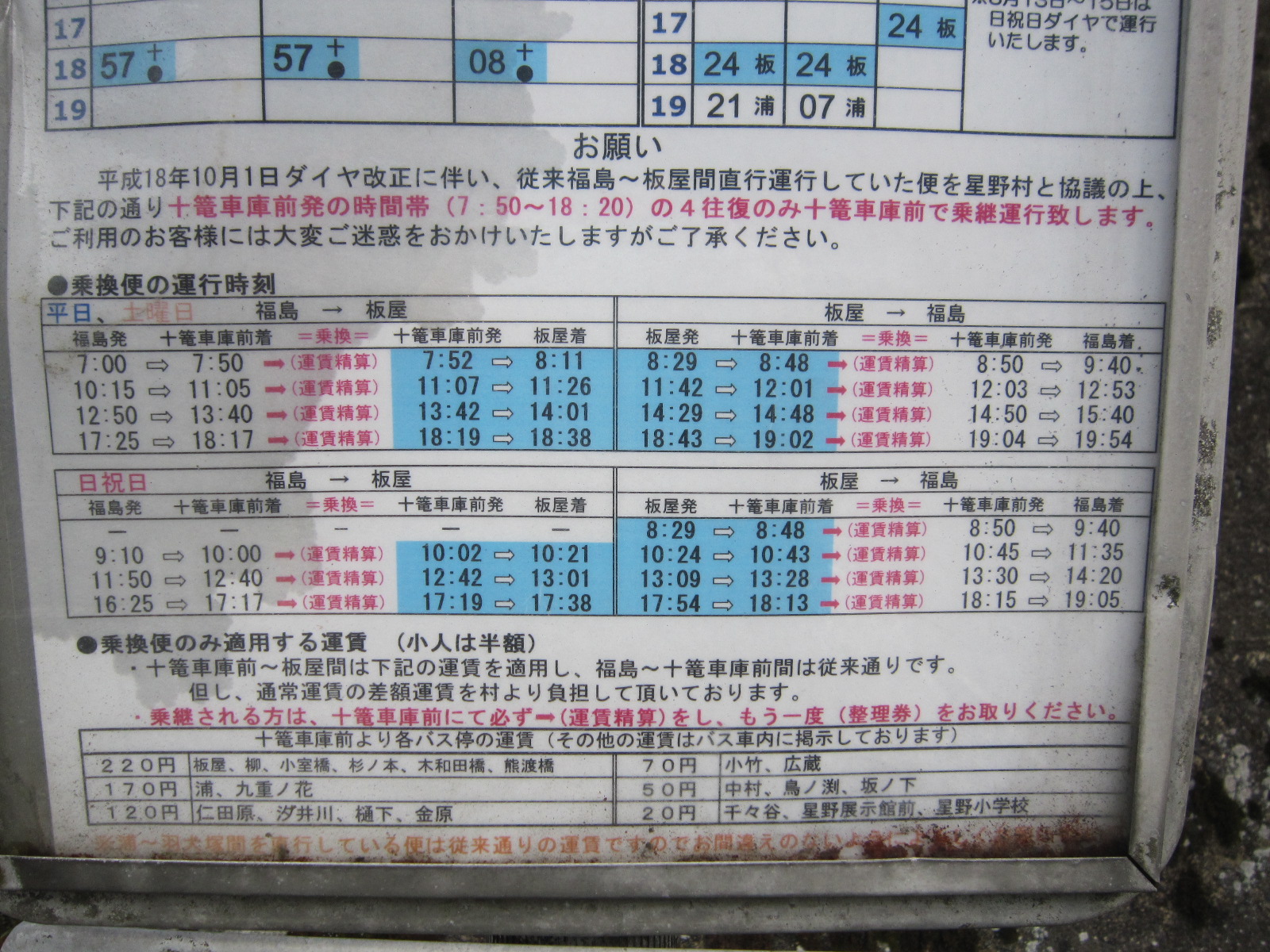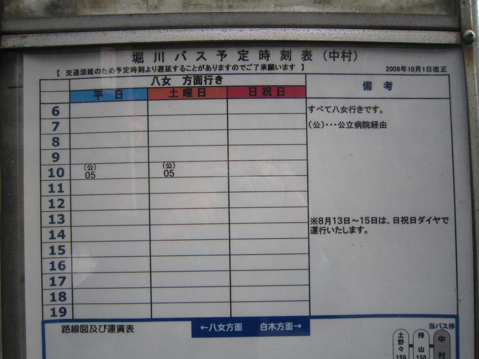 長野は、星野方面と矢部方面への分岐点にあたるバス停ですが、バス停掲示の路線図は星野方面無視。