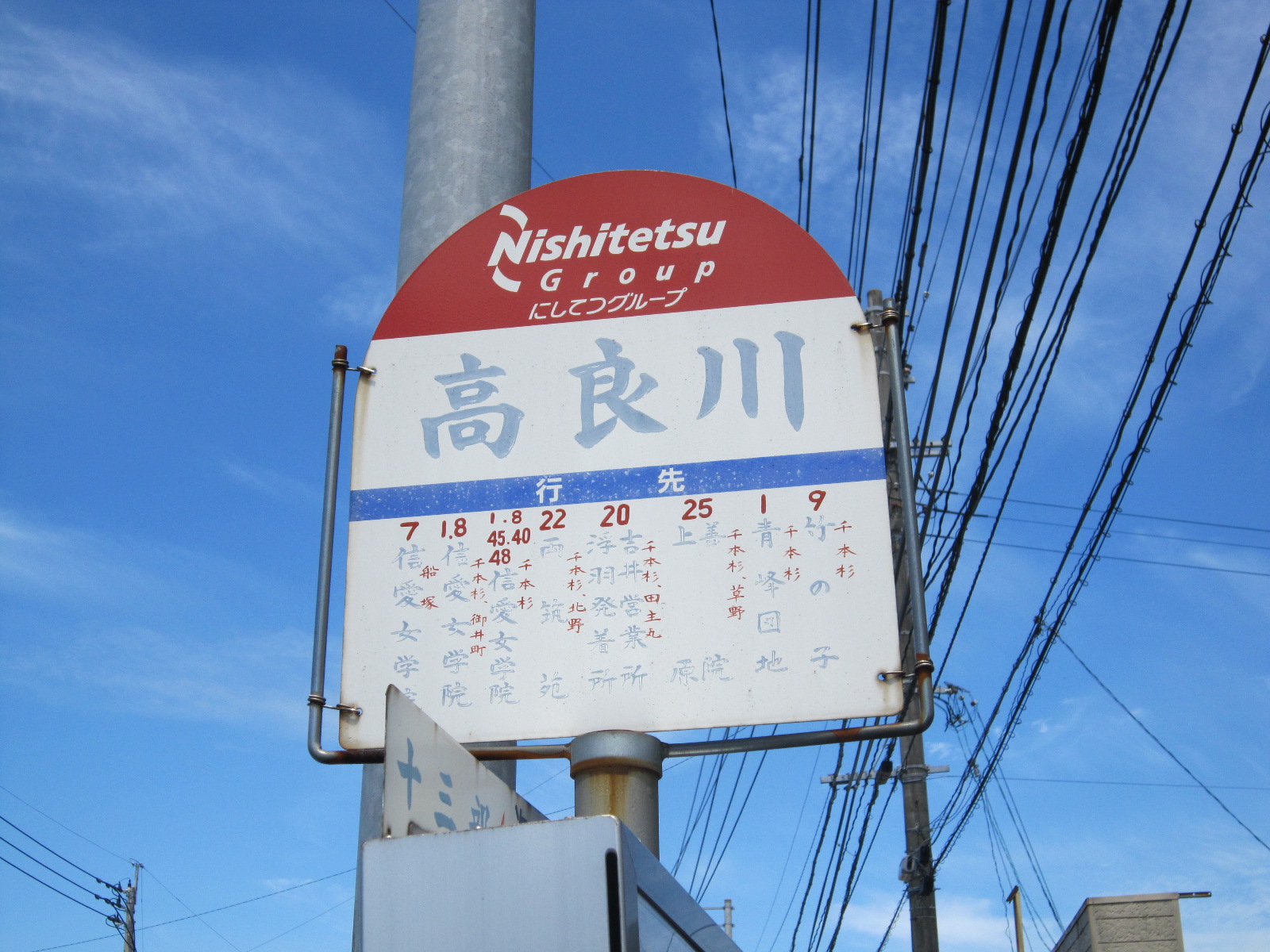 久留米市の高良川。国道322号線上のバス停で、西鉄久留米から見て千本杉の二つ手前です。