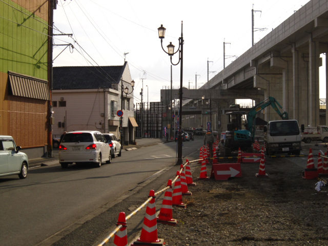 後ろは新幹線の高架。