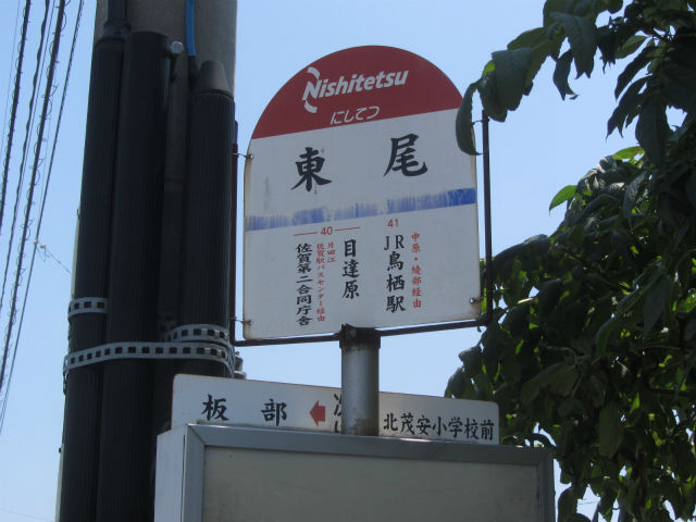歩道橋から久留米側を眺めると隣のバス停が見えますが、北茂安小学校前です。